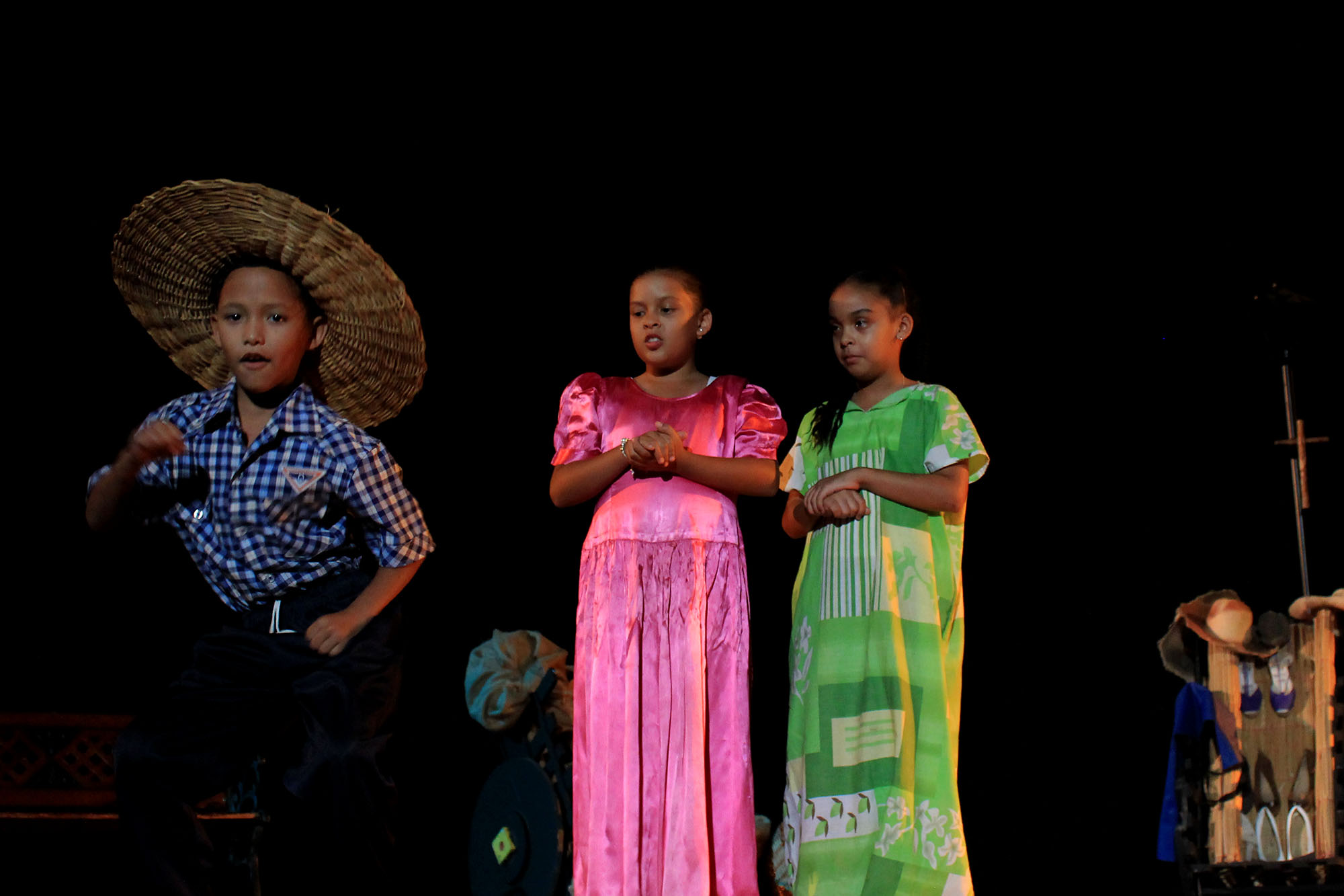 Seguidamente “Las esquinas de San Agustín”, obra desarrollada durante el taller vacacional teatral, se apoderó del escenario a través de los pequeños actores, al son de un tambor amarillo la historia se fue desarrollando; “La parroquia San Agustín nació el 21 de diciembre de 1936 por un decreto del presidente Eliazar López Contreras”, a partir de esas palabras los cuentos y anécdotas sirvieron para que los niños tengan una extraordinaria participación.