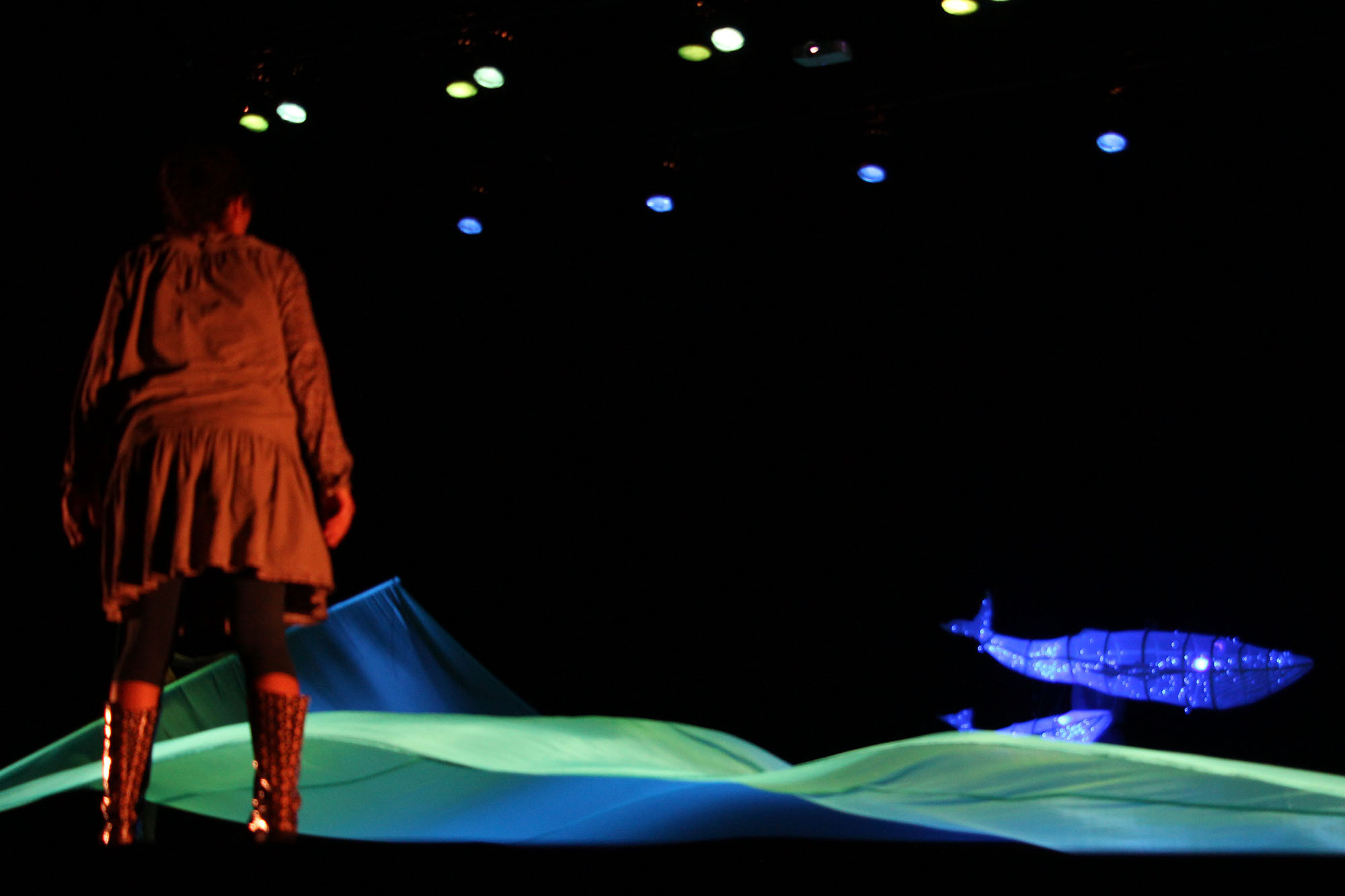 Esta obra cuenta con un formato escenográfico que le permite al espectador disfrutar, y al mismo tiempo ver como se realizan todos los efectos y proyecciones que acompañan muestra escenográfica.