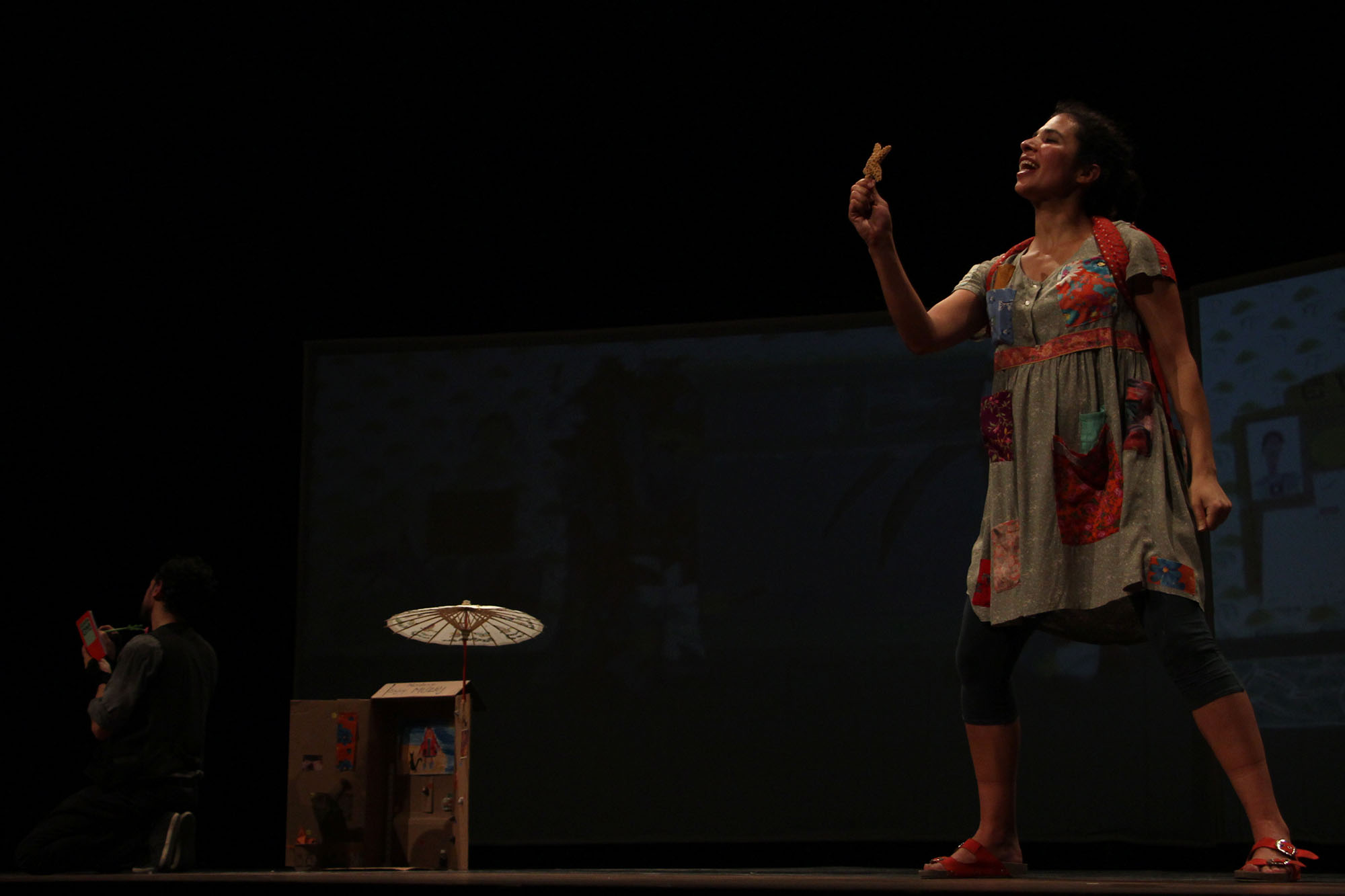 Caracas, 26 de abril de 2017.- Emma, con su block de notas, brújula, botas de lluvia y un abrigo de 32 bolsillos, junto a su museo de colecciones de pequeñas cosas y extraordinarias, cautivo al público citadino desde las tablas de la sala Anna Julia Rojas, ubicada en la Universidad Nacional Experimental de las Artes (Unearte).
